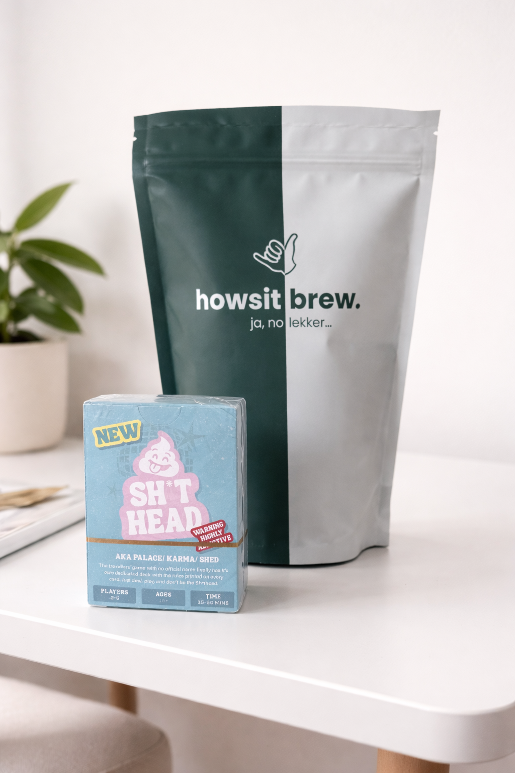 This is the ultimate Howsit Brew starter pack — for weekends, dinner parties, braais, or nights that start calm and end competitive.
